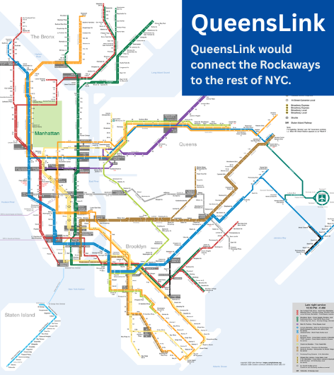 Smart infrastructure investments like QueensLink will better connect our communities and drive economic growth. By creating the only north–south subway line in Queens, residents will no longer be cut off from the rest of the borough and city. This rails-plus-trails project would also add acres of new parkland along the right-of-way. Now is the perfect time to move forward with this plan as Resorts World continues to expand.
